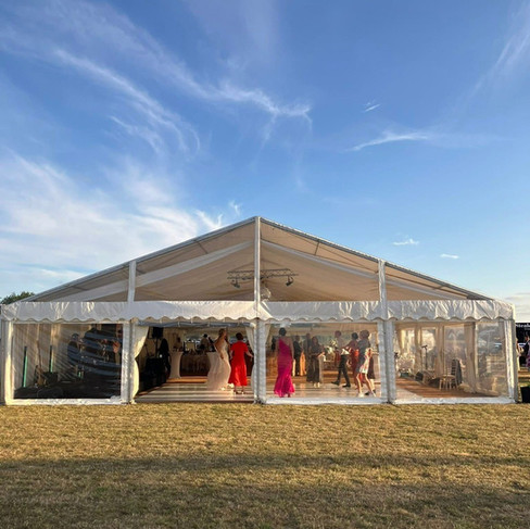 This summer, The Highfield Event Group had the pleasure of creating a truly unforgettable wedding celebration beneath one of our stunning marquees. Set against clear skies and golden fields, the bespoke structure provided the perfect setting for a day filled with love, laughter, and lasting memories.